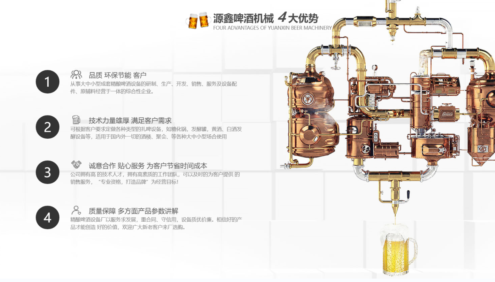 為了追求啤酒獨特個性和地區(qū)特點的釀酒理念,從而促進餐廳的快速發(fā)展,因此我們使用自...
